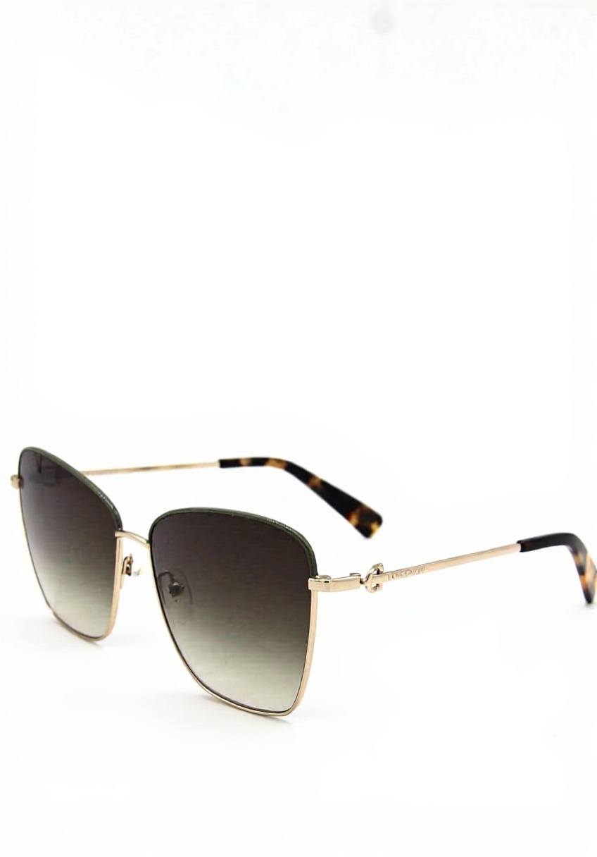 Modèle LO153S, référence 46516, disponible en couleur or/khaki. La taille de la monture est de 59 millimètres, adaptée à la plupart des visages féminins. Livrées avec un étui de protection pour un rangement sécurisé. Poids léger pour un confort accru lors des déplacements.