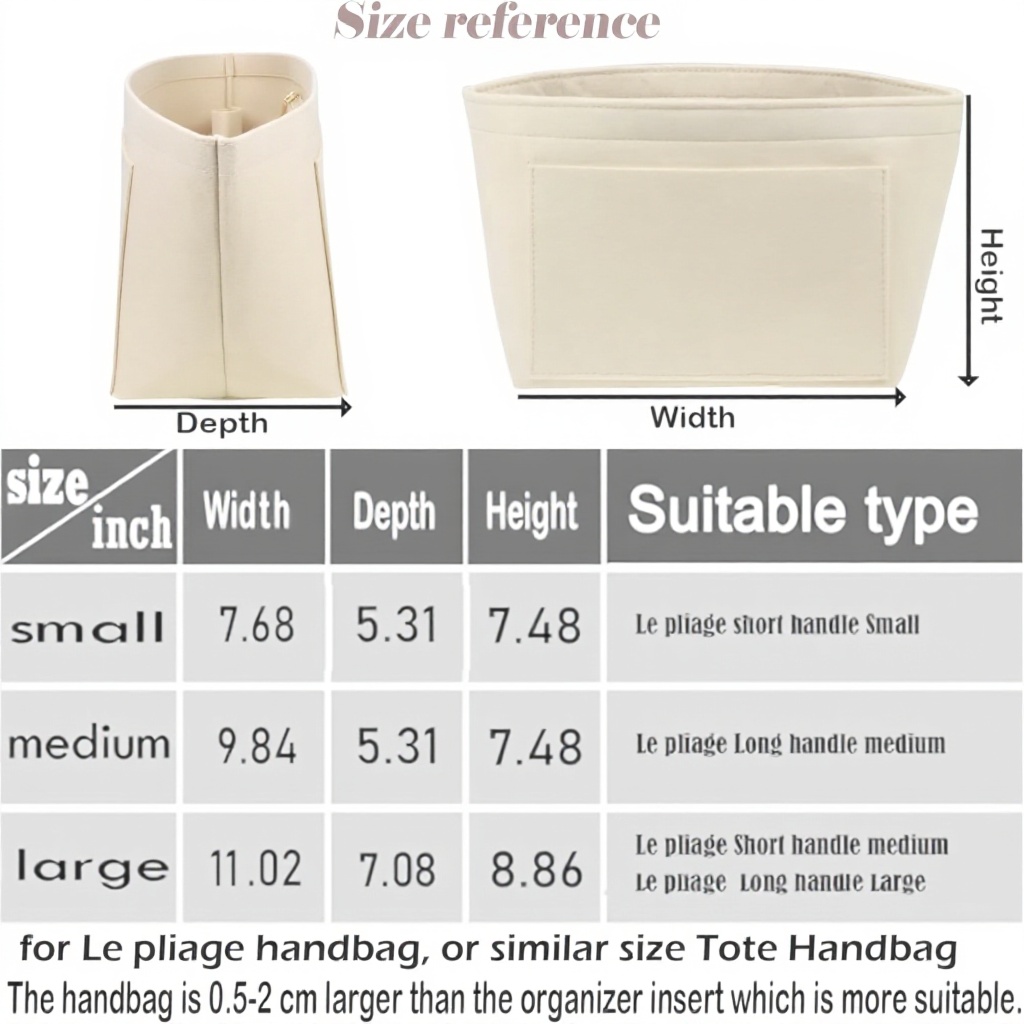 Dimensions : 27,94 x 24,99 x 17,02 cm. Poids : 372 grammes. Matériau : feutre. Modèle : AG. Convient parfaitement au sac Le Pliage taille L.