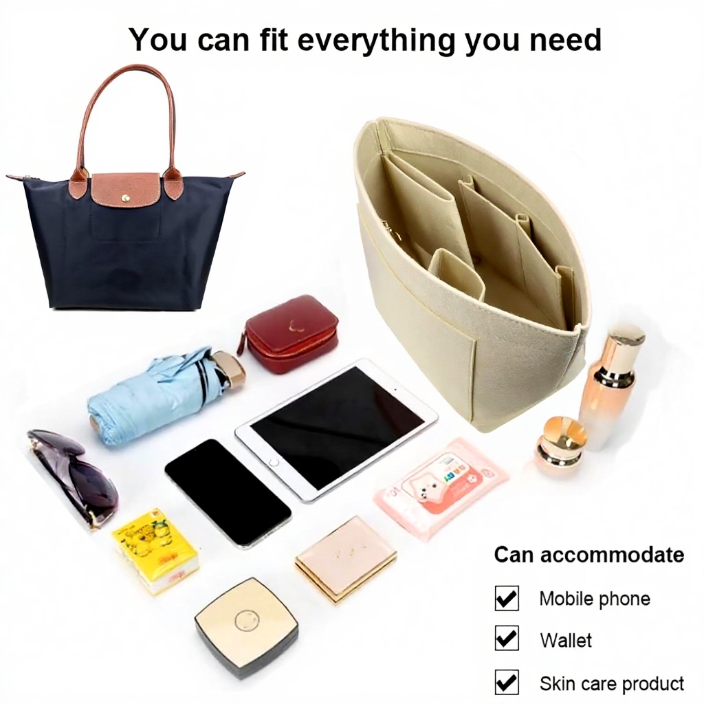 Idéal pour le travail, les courses ou les voyages, cet organiseur s’adapte à votre routine quotidienne. Utilisez-le pour ranger vos essentiels comme le rouge à lèvres, le portefeuille ou les clés, évitant ainsi le désordre dans votre sac.