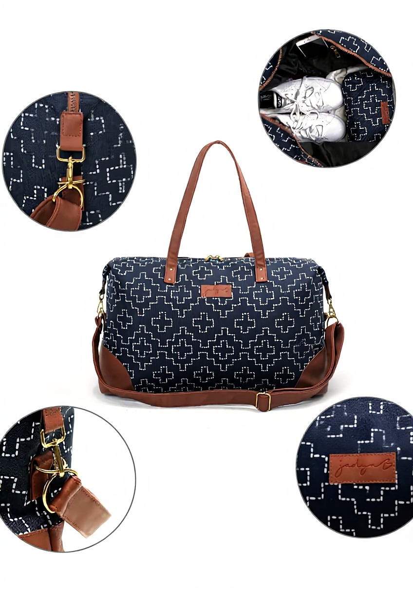 Ce sac mesure 54,61 x 17,78 x 35,56 cm avec une capacité de 37 litres, conçu spécifiquement pour un usage féminin. Le modèle Luna pèse léger pour son volume et se décline en plusieurs coloris dont Sashiko, Flore de Sauge, Mosaïque et Cheetah Spot, chacun fabriqué à la main avec attention aux détails.