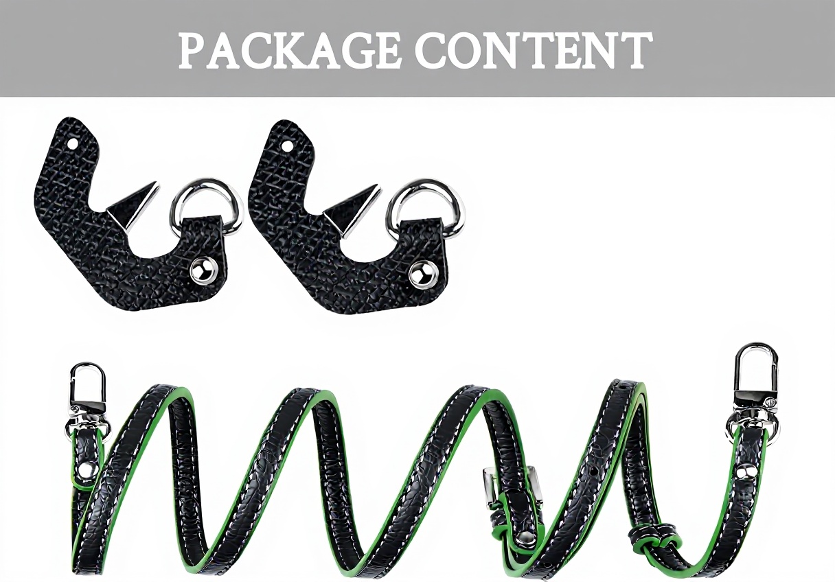 L’installation est simple : fixez les kits de fixation inclus aux anneaux du sac, puis attachez la sangle au crochet métallique. Aucun outil n’est nécessaire, et des instructions détaillées sont fournies.